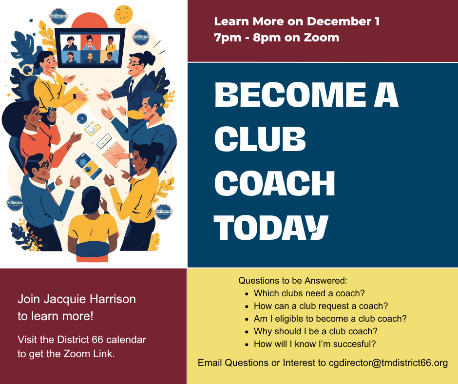 If your club has 12 or few members or you are working toward your DTM, join us to learn more about Club Coaches at this informational session.