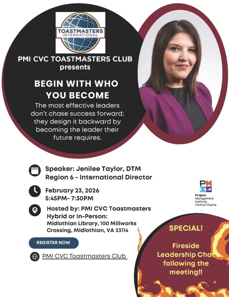 PMI CVC Toastmasters is hosting a Backwards Meeting where we start with the end in mind and work our way back—because the best leaders don’t chase success forward… they design it backward.