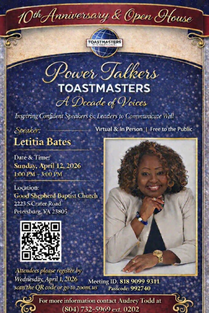Power Talker Toastmasters is celebrating their 10 year anniversary by hosting