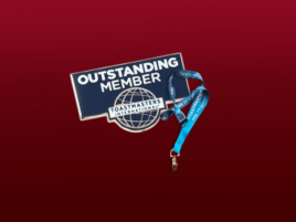 The Reward: a Toastmaster Lanyard and an Outstanding Member pin