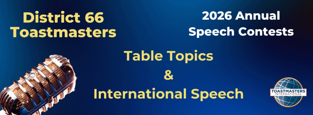 District 66 will hold the International Speech Contest and the Table Topics Speech Contest.